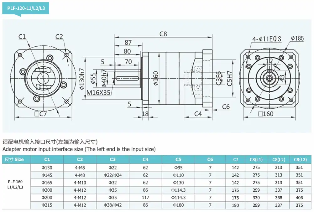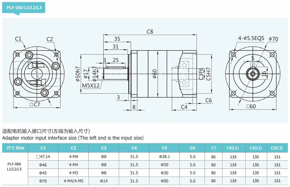 | Model | Unit | PLF060 | PLF080 | PLF090 | PLF120 | PLF160 | Ratio | Stage | ||||||