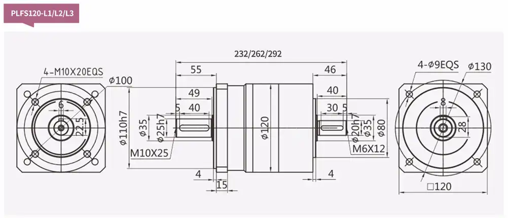 | Model | Unit | PLFS060 | PLFS090 | PLFS120 | PLFS160 | Ratio | Stage |